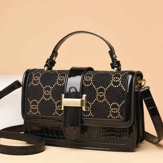 2025 Nova Moda Diamante Couro Genuíno Bolsa Feminina