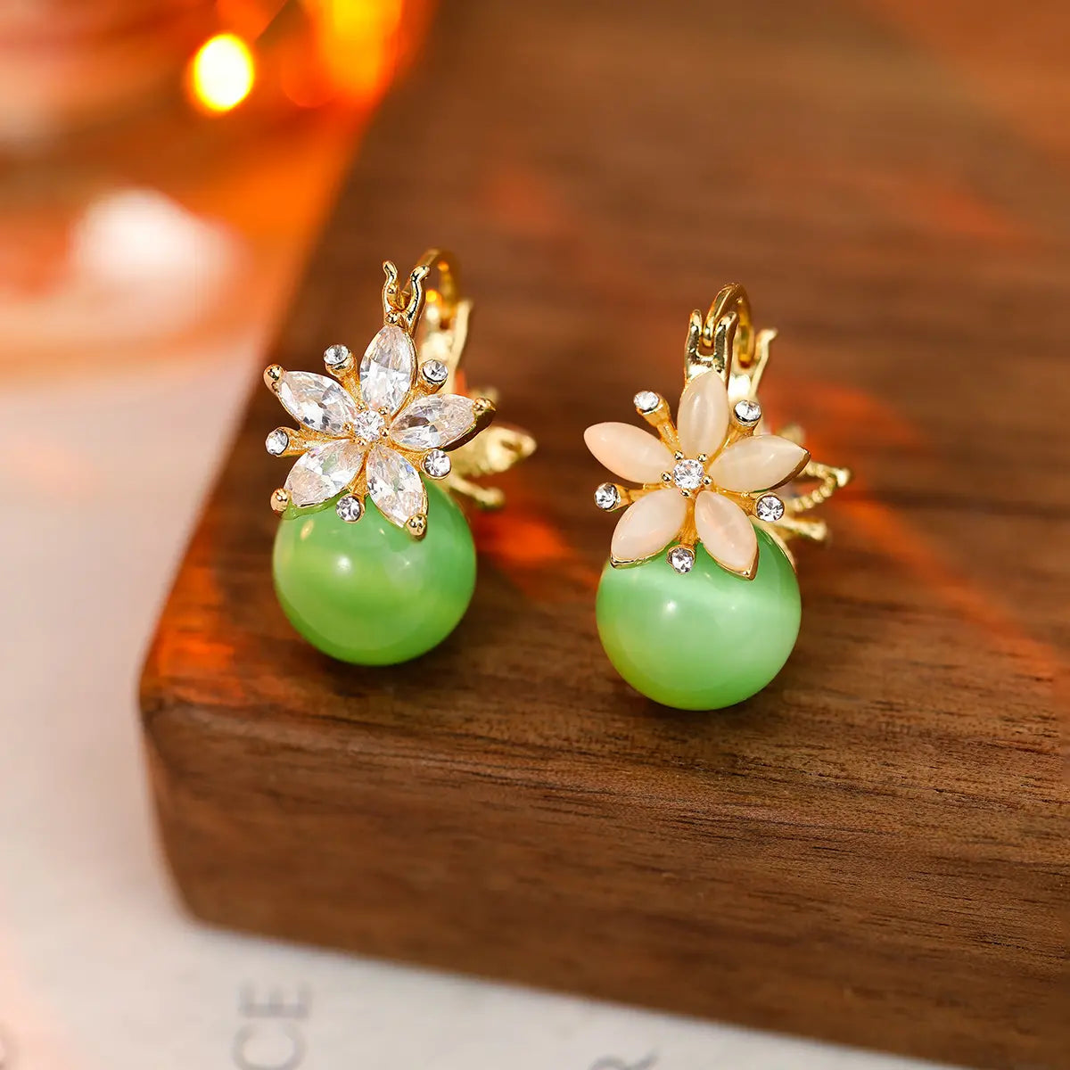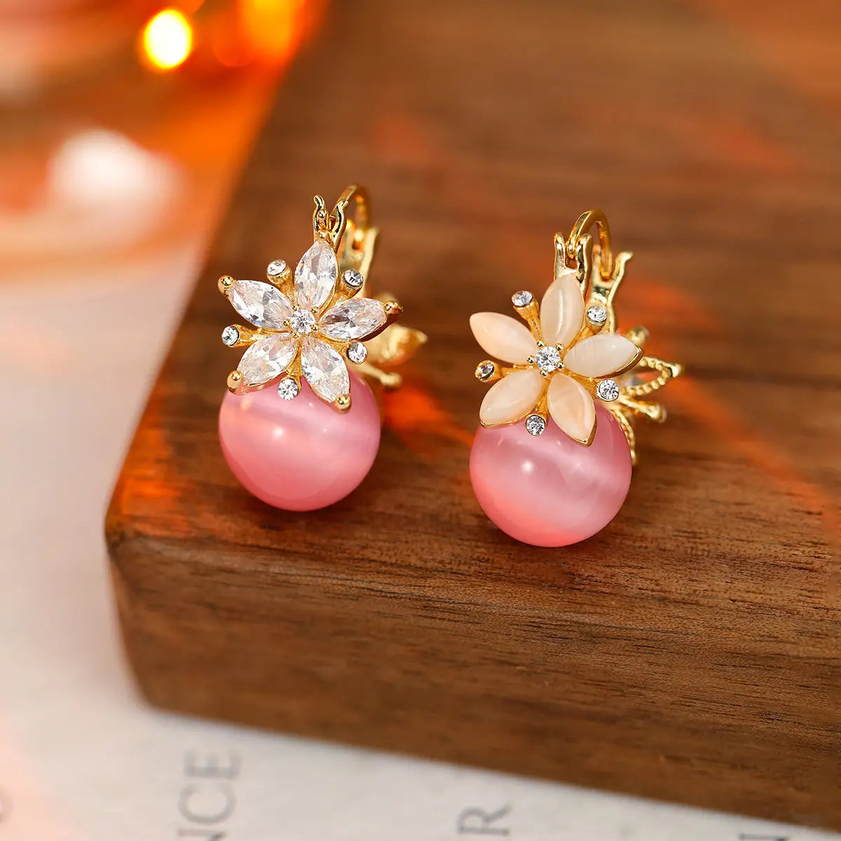 ✨Brincos olho de gato com flores dobradas e zircónias cúbicas