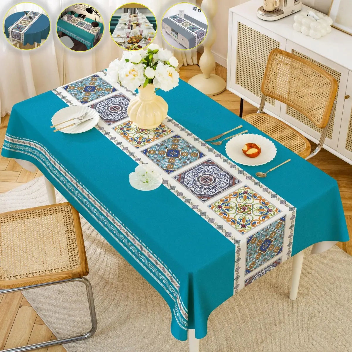 👍🛒Tovaglia ricamata di lusso di alta qualità, impermeabile e resistente all'olio, lavabile e antigraffio.