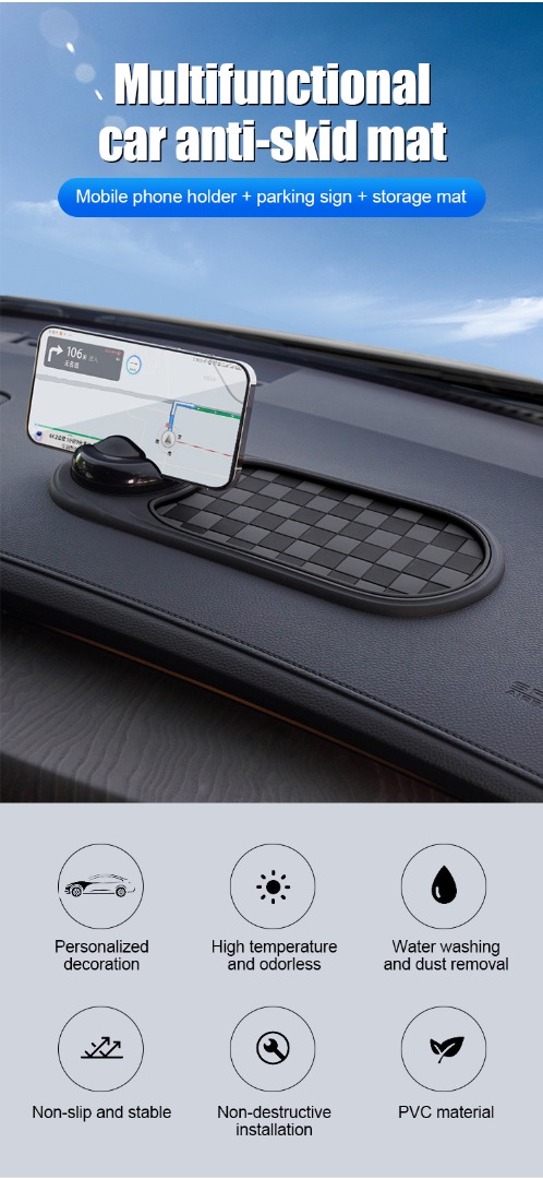🚗Tapete antiderrapante para automóvel, suporte para telemóvel, suporte para óculos de sol para navegação automóvel, indicador de estacionamento, suporte para comando central.
