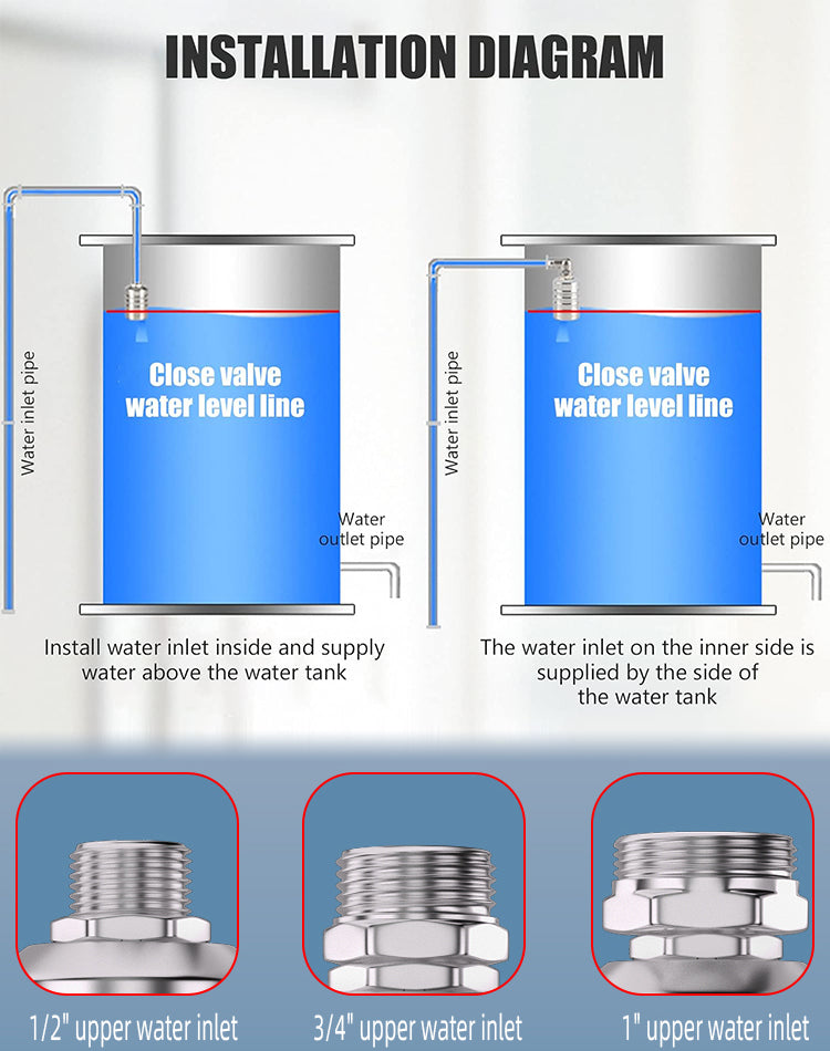 【20+25+32CM】Valvola a sfera in acciaio inossidabile, regolatore automatico del livello dell'acqua per il riempimento dell'acqua
