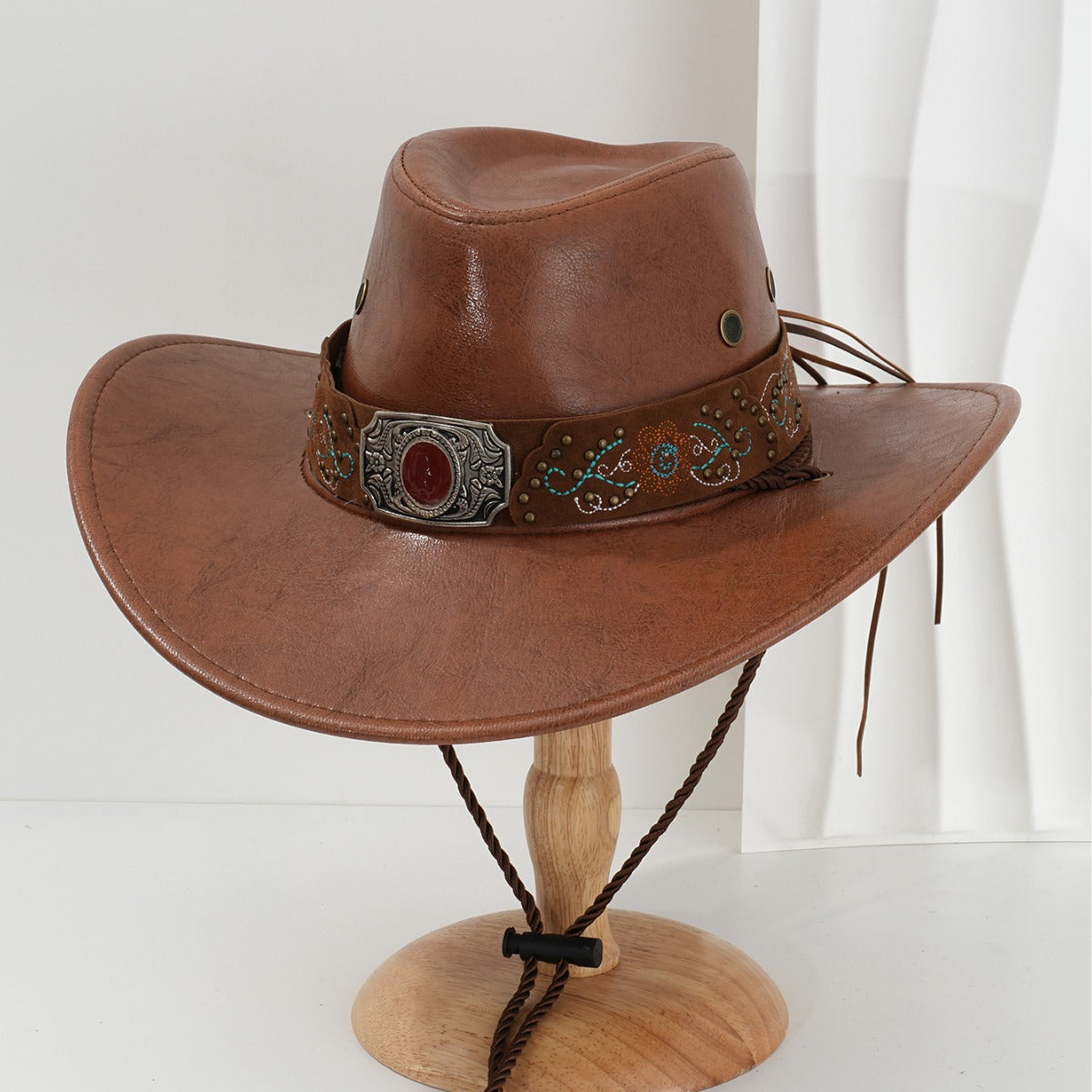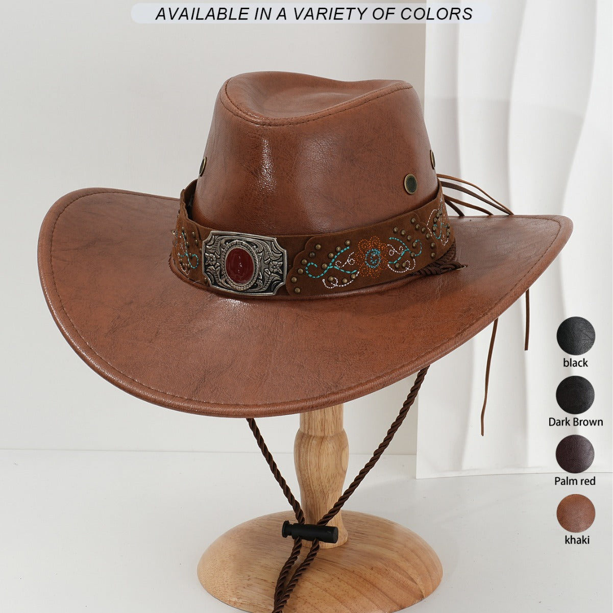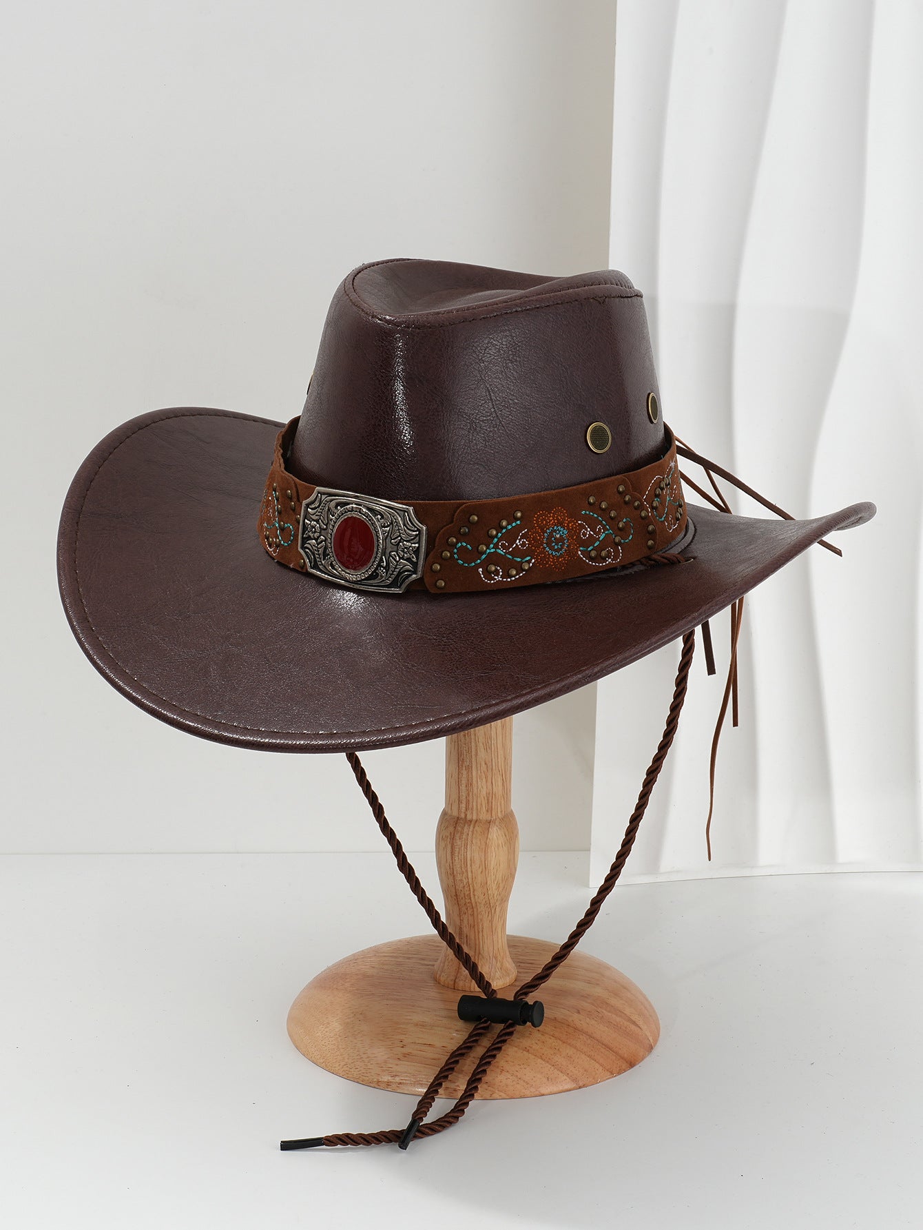 🤠Kovový rubínový vzor s vyšívanými kvetmi Kovbojský klobúk z PU kože