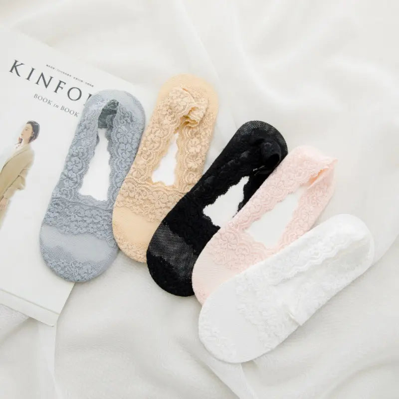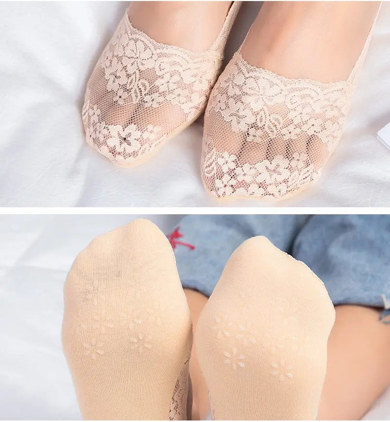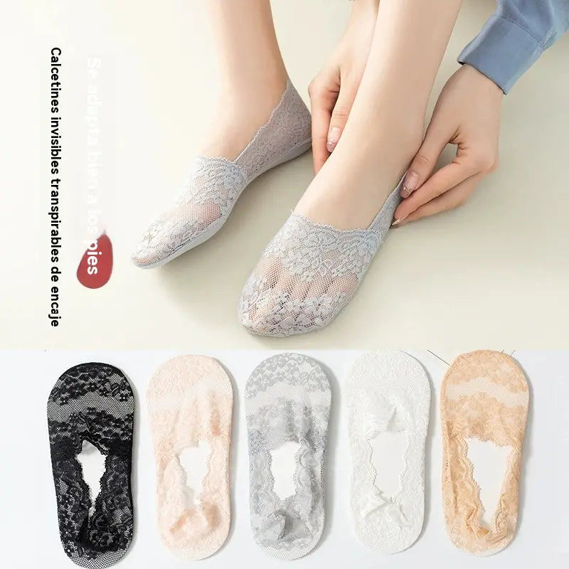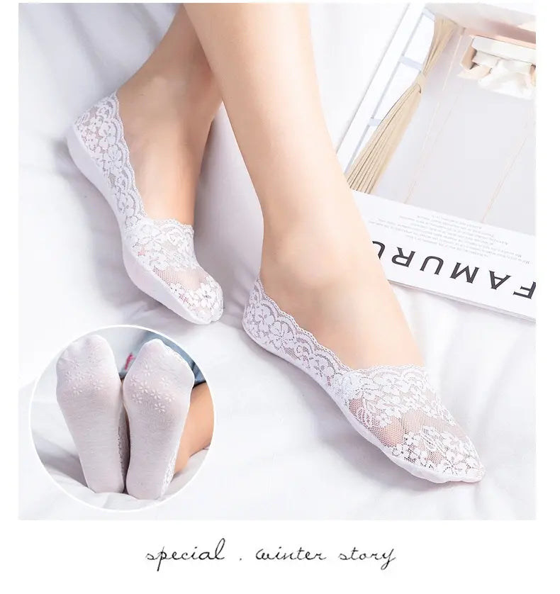 š©°Calzini invisibili in pizzo antiscivolo di cotone, in silicone che si adatta al tallone, stabili e non facili da scivolare
