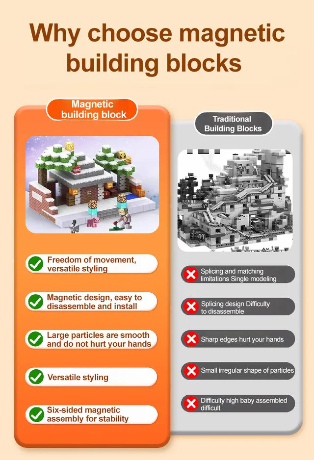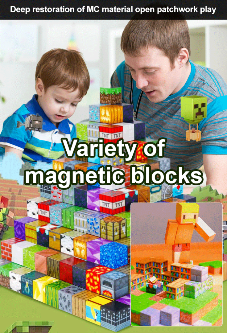 "Minecraft"【48/96/144 pezzi】🤣 Blocchi da costruzione magnetici deformabili