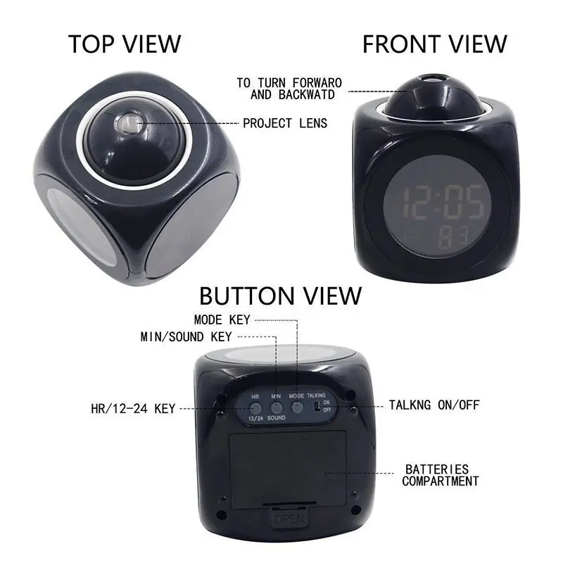 ⏰ Relógio Projetor Multifunções — hora, alarme, temperatura e previsão do tempo na parede ou no teto