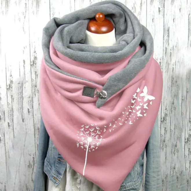🐏 Lenço térmico com botões e forro em lã estampada que pode cobrir toda a parte superior do corpo.