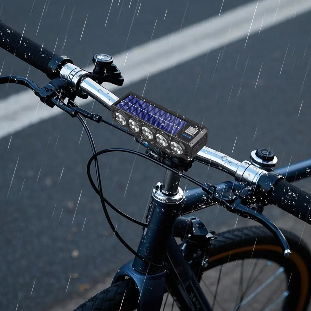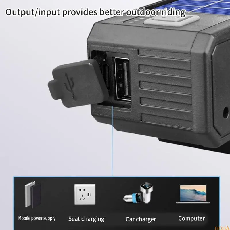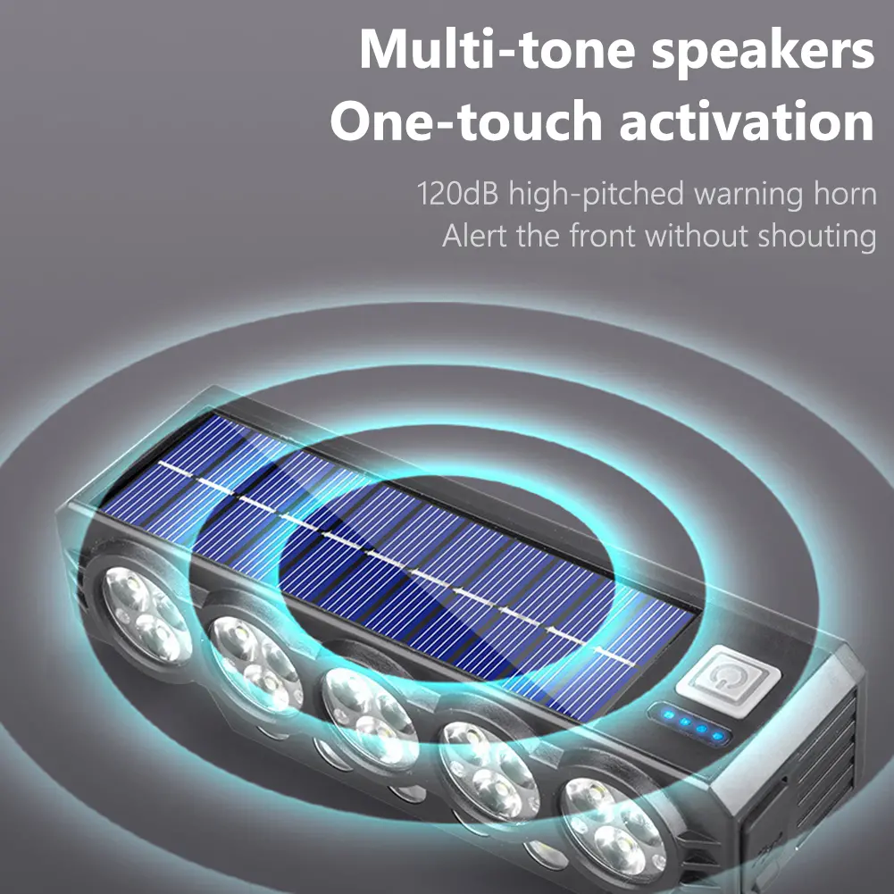 🚨💡 Farol solar para bicicleta com carregamento USB e altifalante, 900 lúmens, luz noturna de longa duração para ciclismo