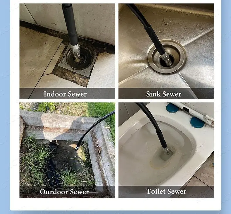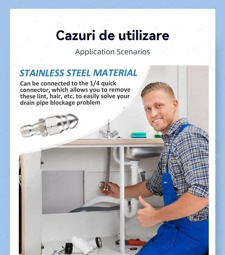 🛠️Bocal de jato de água de alta pressão, em aço inoxidável, com ligação rápida de 1/4", frontal e traseira, seis bicos, para limpeza e desentupimento de tubagens de esgoto.