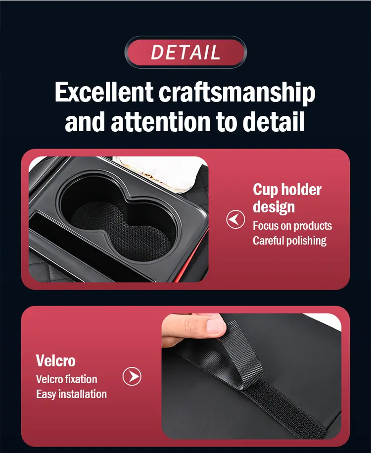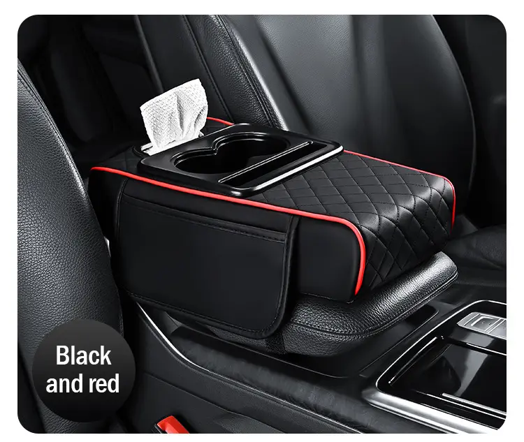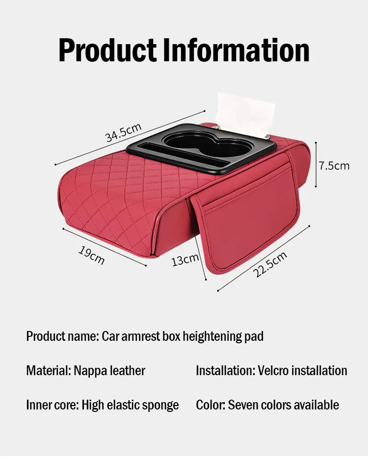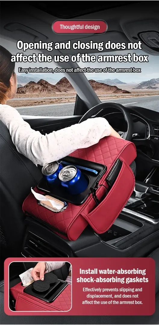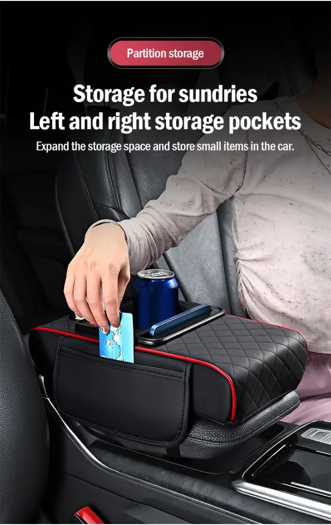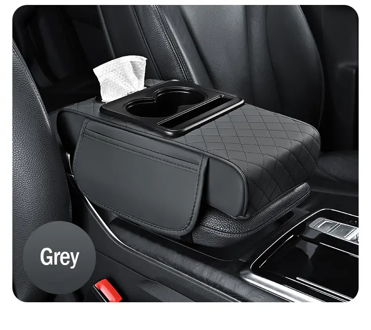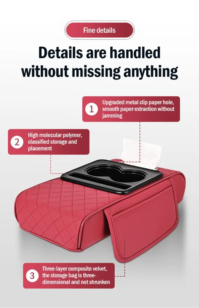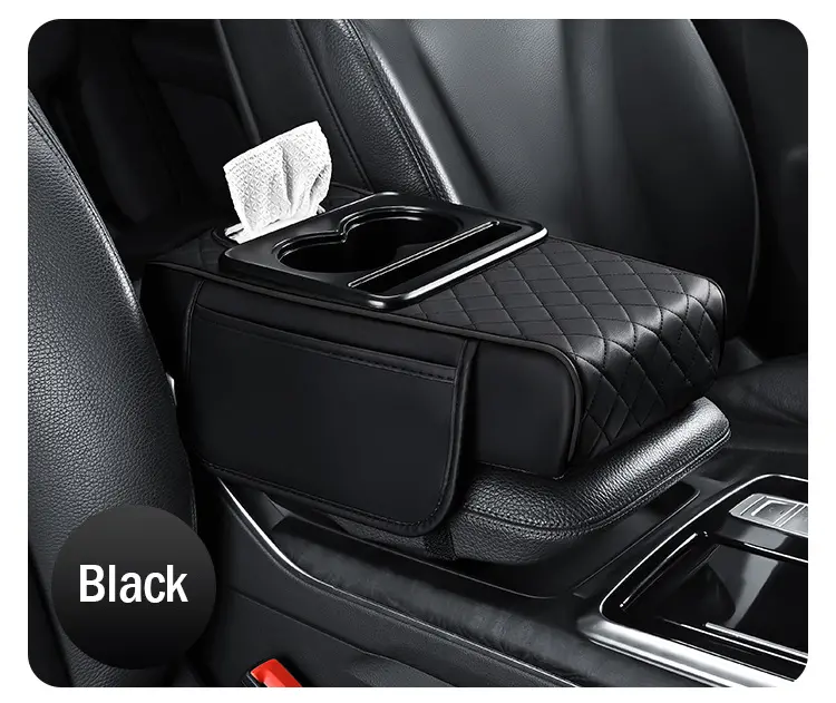 Almofada de apoio de braço para automóvel em pele universal 4 em 1 ✅ Caixa de lenços embutida ✅ Suporte para copos