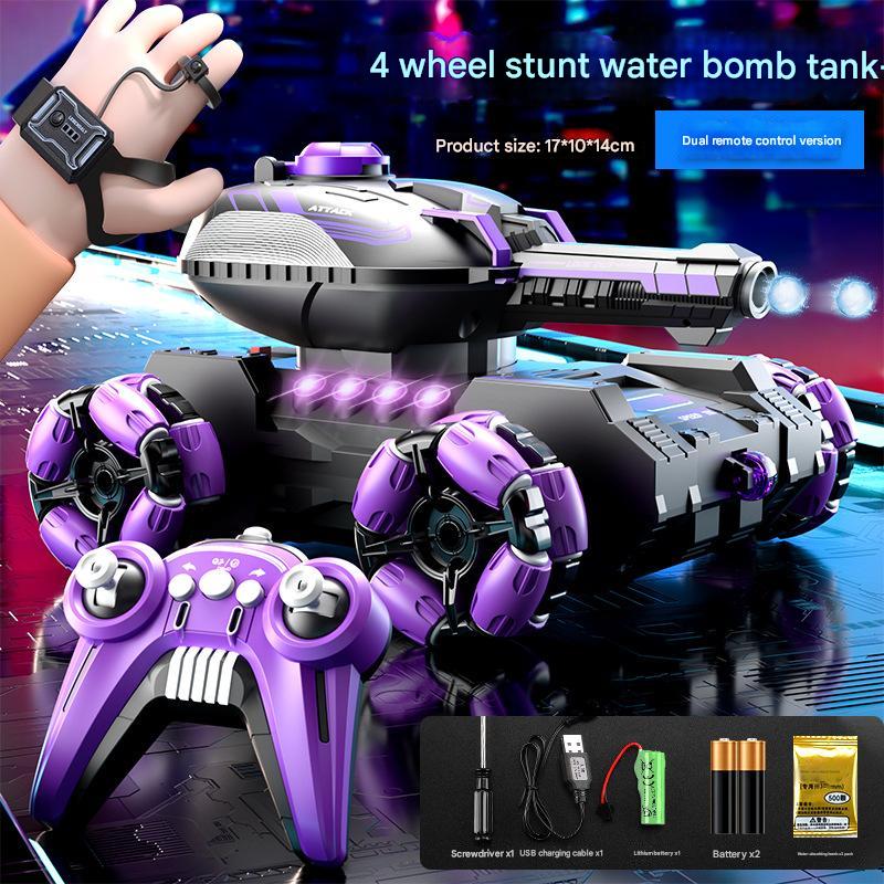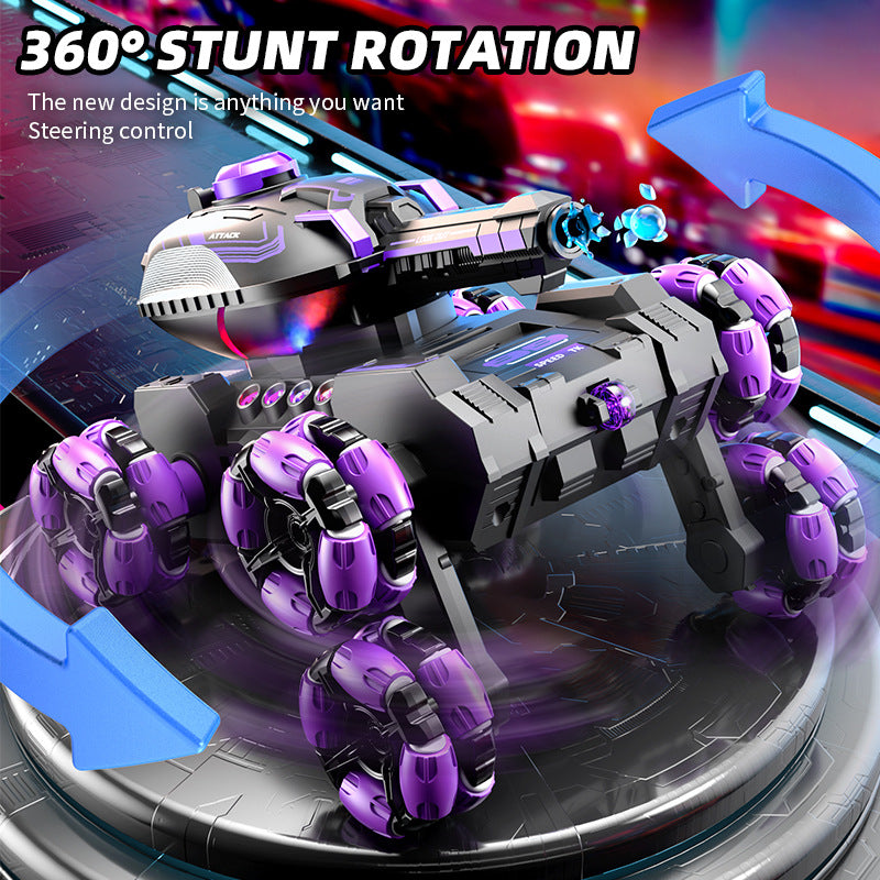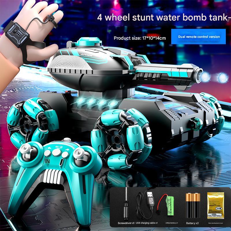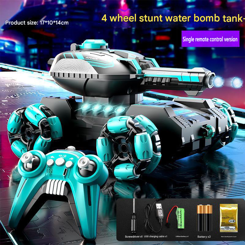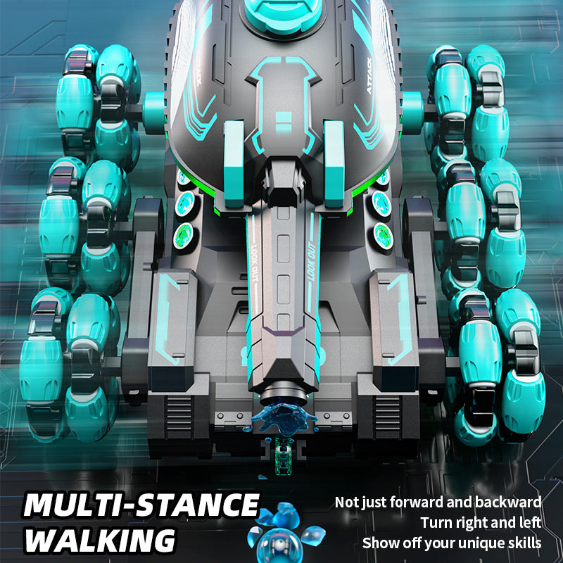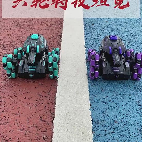 Šesťkolesové diaľkovo ovládané tankové vozidlo, ktoré sa dokáže premeniť na boj a odpáliť vodné bomby
