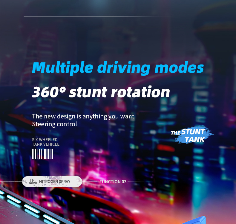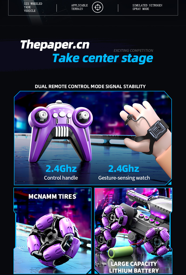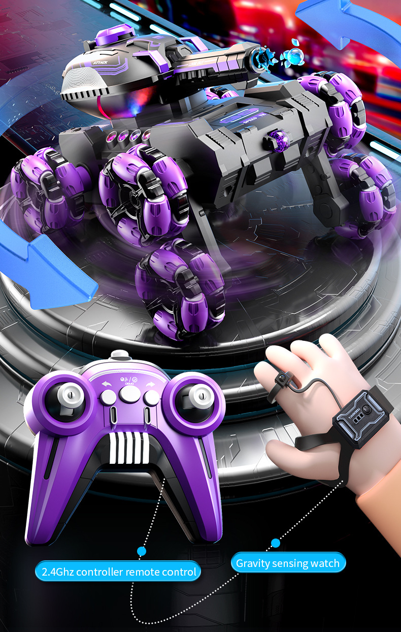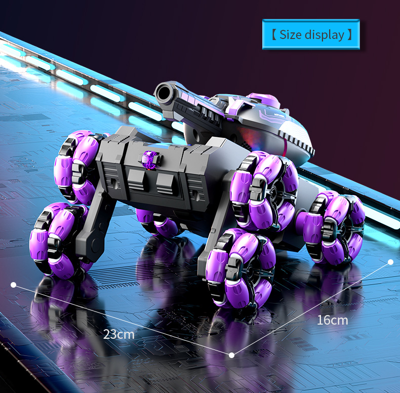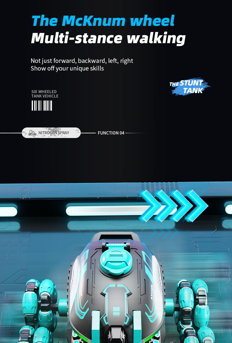 Šesťkolesové diaľkovo ovládané tankové vozidlo, ktoré sa dokáže premeniť na boj a odpáliť vodné bomby